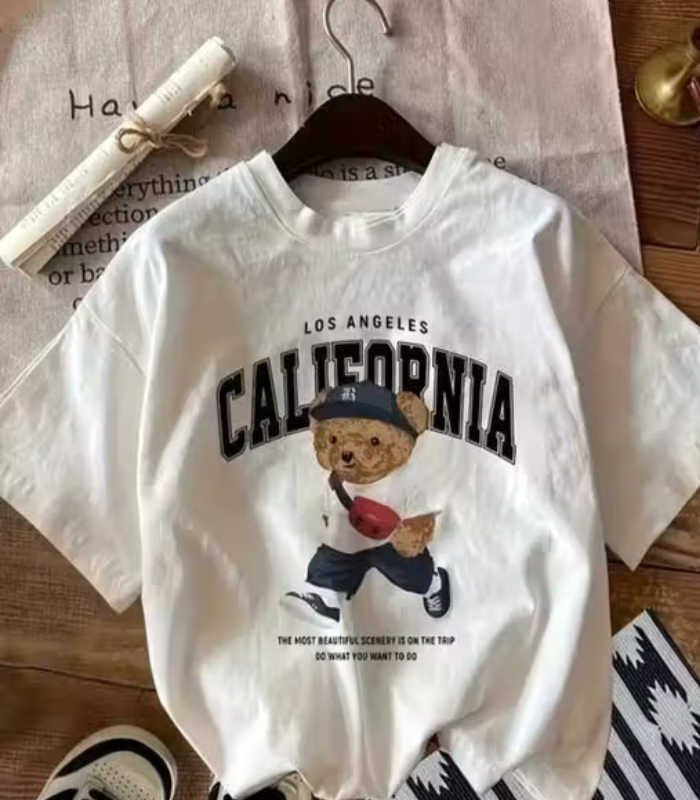 ₹215.00Graphic Printerd Round Neck White Colour Raglan Sleeves Oversize T-Shirt