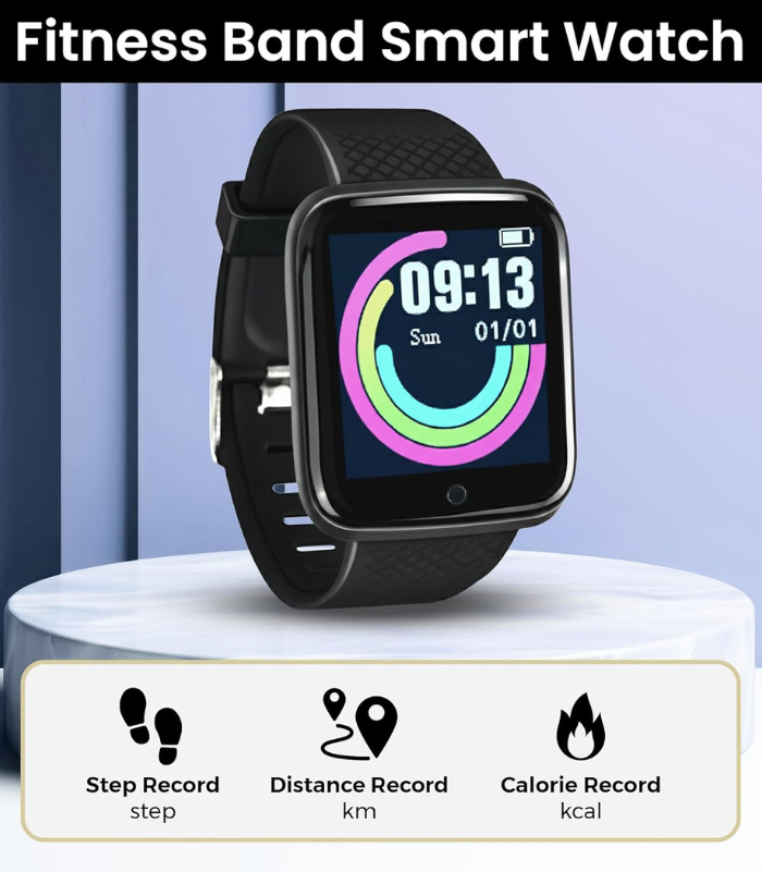 Bouncefit D20 Y68 Fitness Band Smart Watch for Men, Women, Boys, Girls, Kids – Single Touch Interface, Water Resistant, Workout Modes, Quick Charge Sports Smartwatch – Jet Black