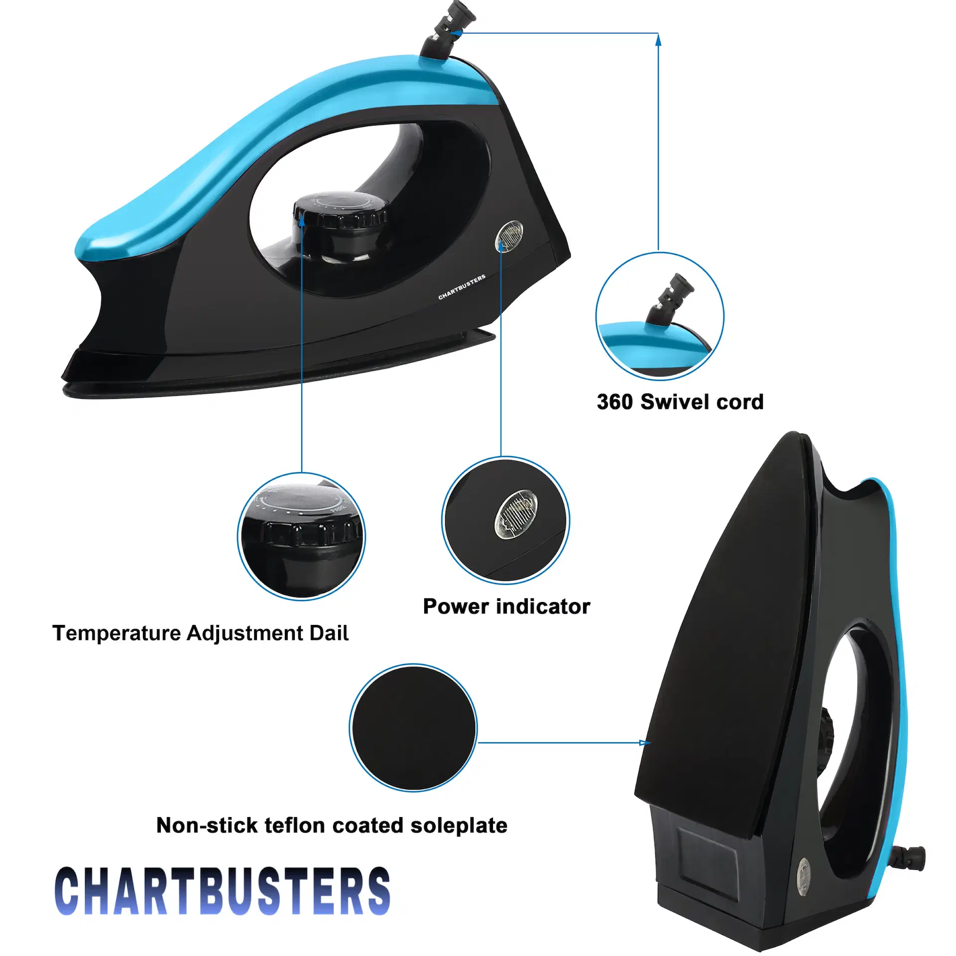 Be the first to review “CHARTBUSTERS MJ BLUE Black 1000 watt Dry Iron”