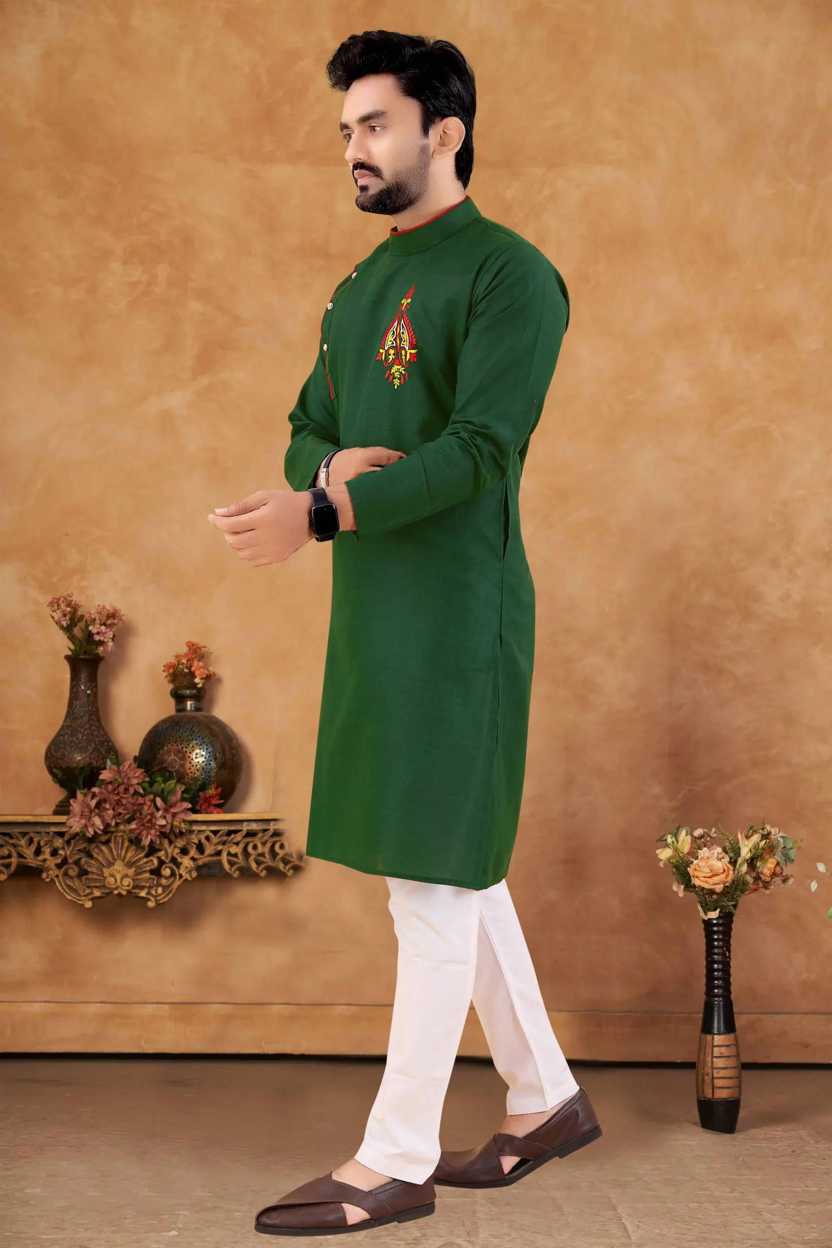 Green Cotton Blend Regular Fit Men’s Kurta Pyjama Set ( Pack of 1 )