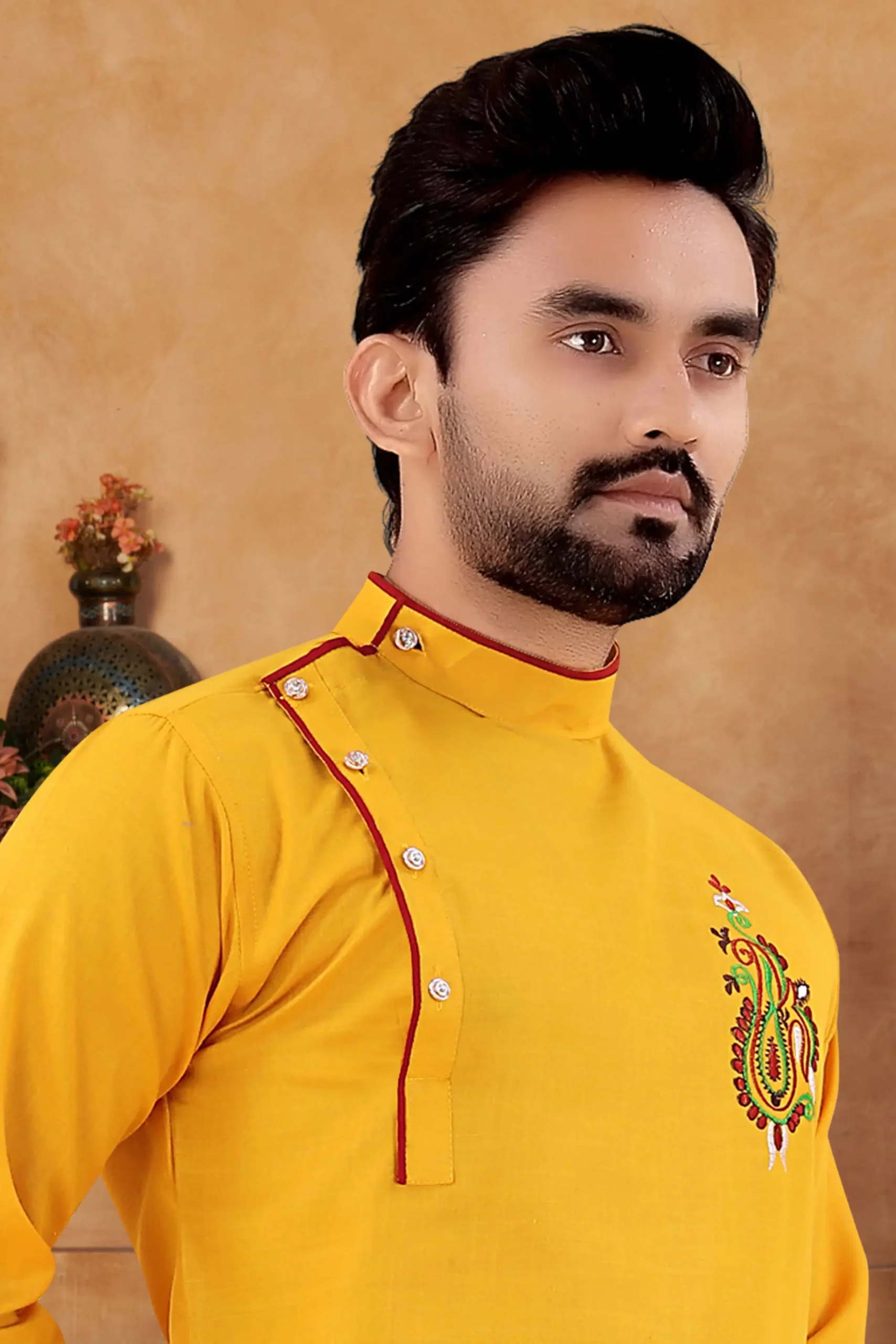 Mustard Cotton Blend Regular Fit Men’s Kurta Pyjama Set ( Pack of 1 )
