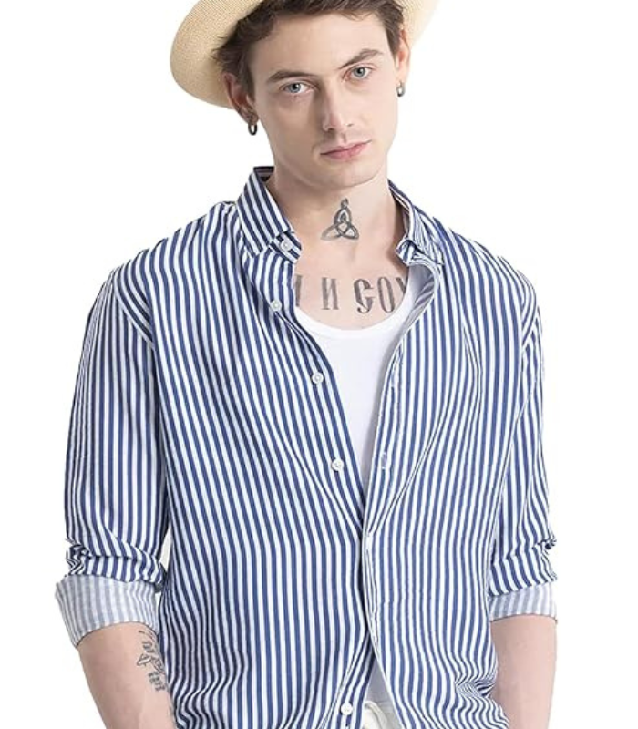 U TURN Men’s Cotton Casual Printed Striped Stylish Latest Shirt for Men