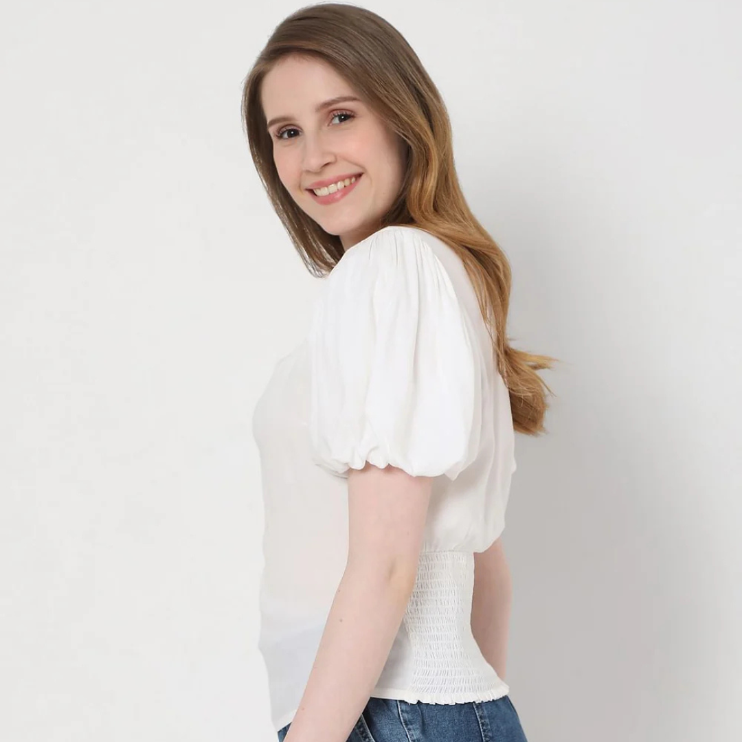 Elegant and timeless white puff sleeves top designed for a chic everyday look. Perfect for casual outings and office wear.