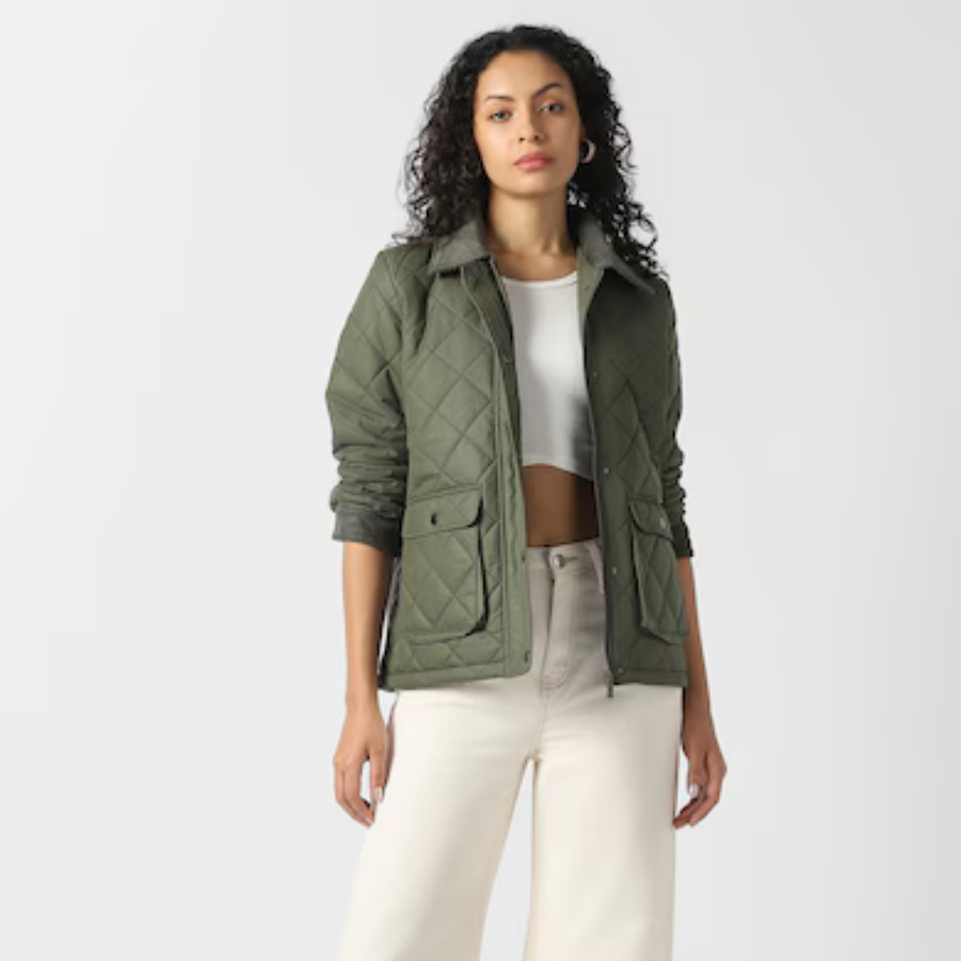 Women Olive Solid Casual Jacket Original price was: ₹1,299.00.Current price is: ₹649.00.