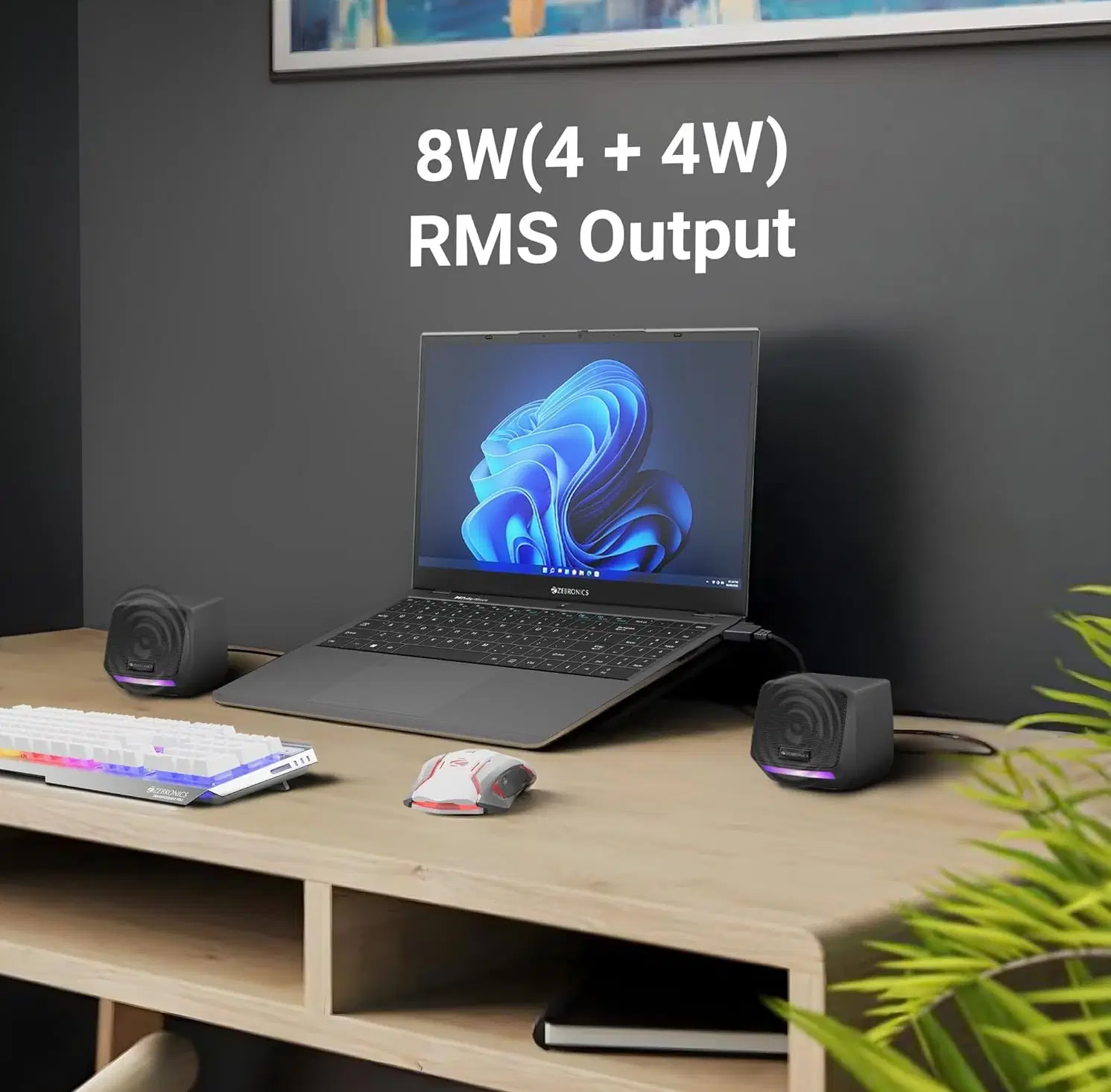 Dynamic output: Apt for delivering immersive sound with clear audio, the ZEB-Igloo 1 2.0 speaker operates at 8W, ensuring a captivating listening experience